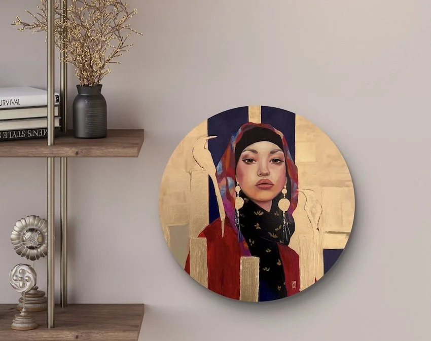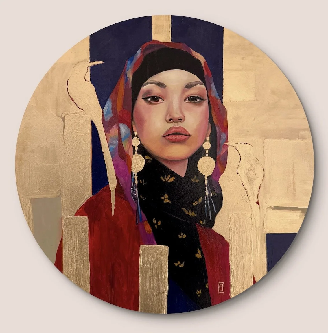 Defined by her Technique: Oil paint and bronze paint on wood panel Size 40 ∅Price 365,00 euro --- All artworks