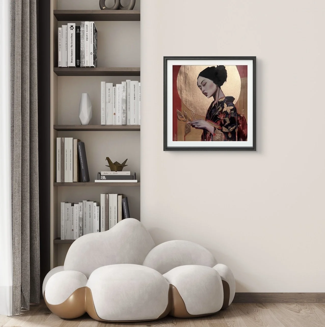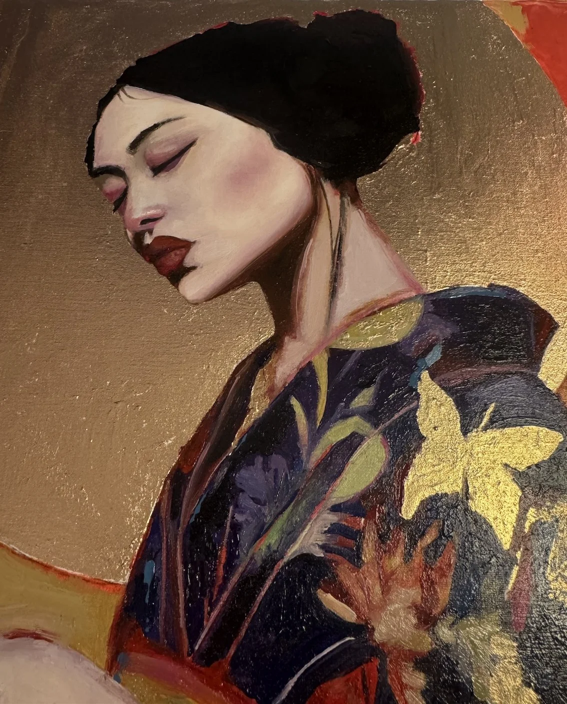 Embodied with tradition Technique: Oil paint and bronze paint on oil paper Size 30 x 30 cm Prize 275 euro (frame incl.) --- All artworks
