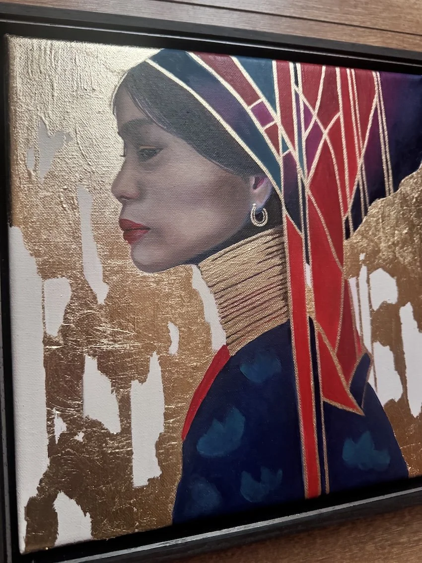 Technique: Oil paint, bronze paint and metal leaf on canvas