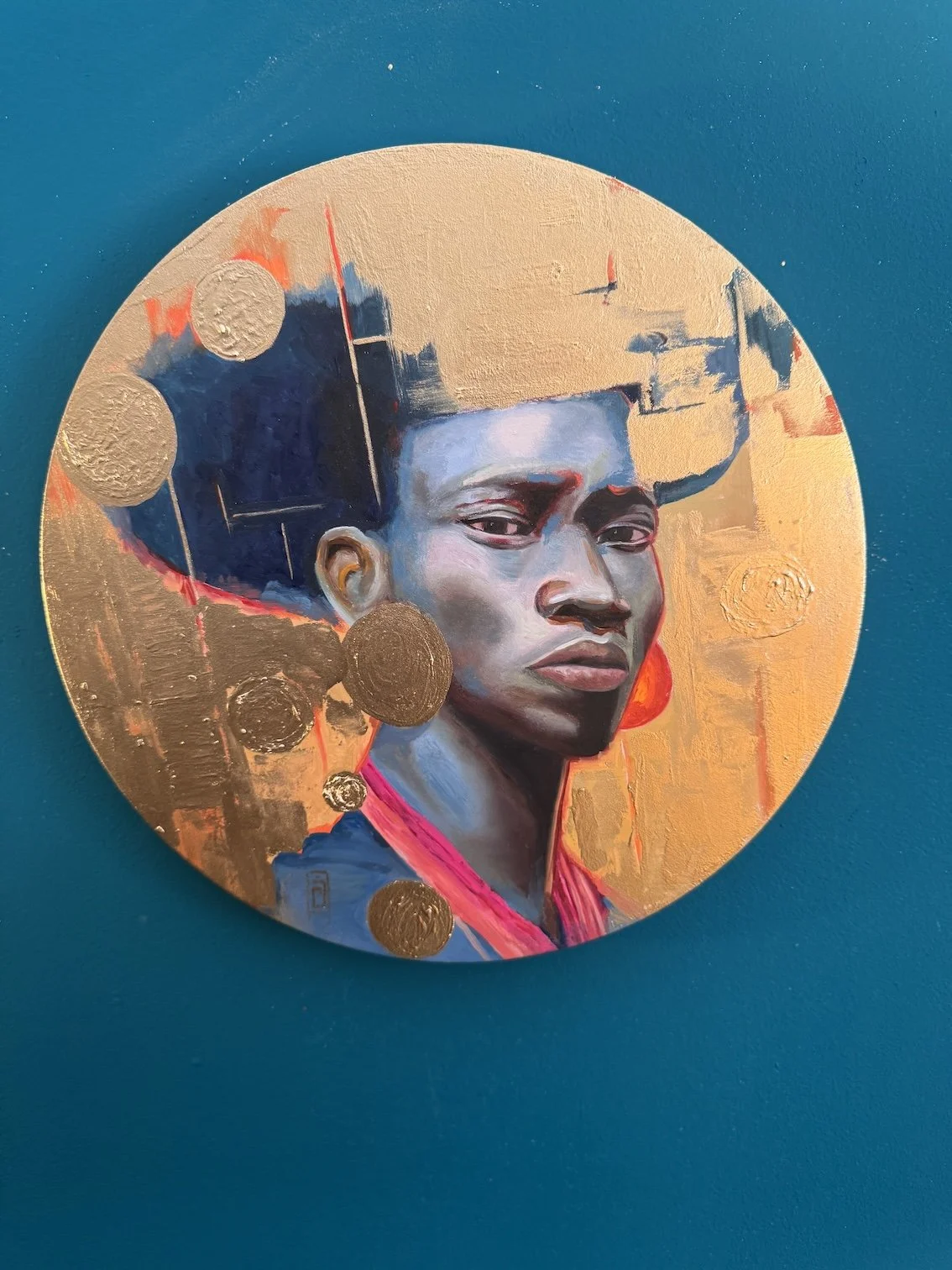 His embedded identity Technique: Oil paint, metal leaf and bronze paint on wood panel Size30 cm ∅Price265,00 euro --- All artworks