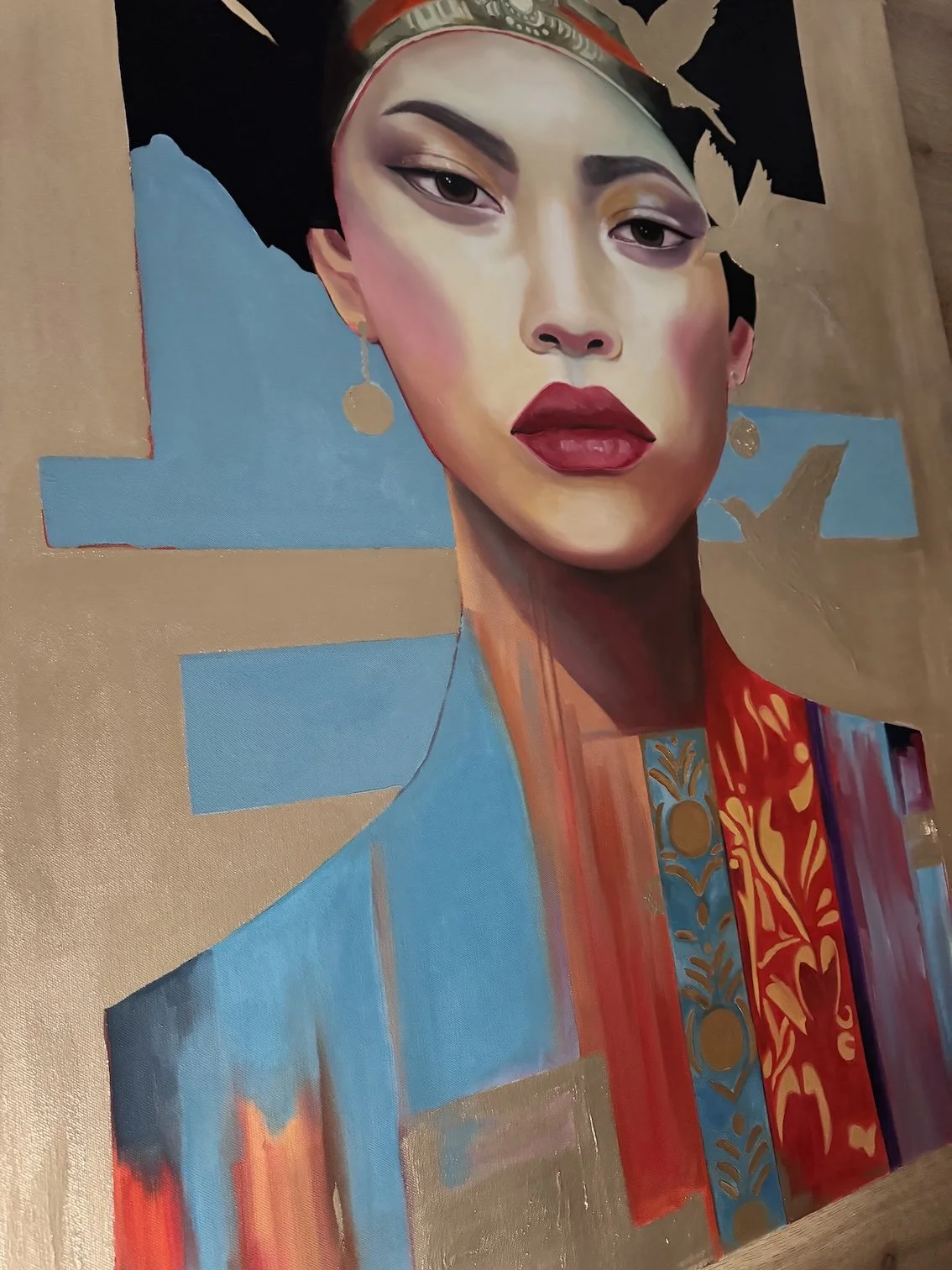 Java Queen Technique: Oil paint, bronze paint on canvas (3D) Size 100 x 120 cm Price € 1095,00 euro --- All Artworks