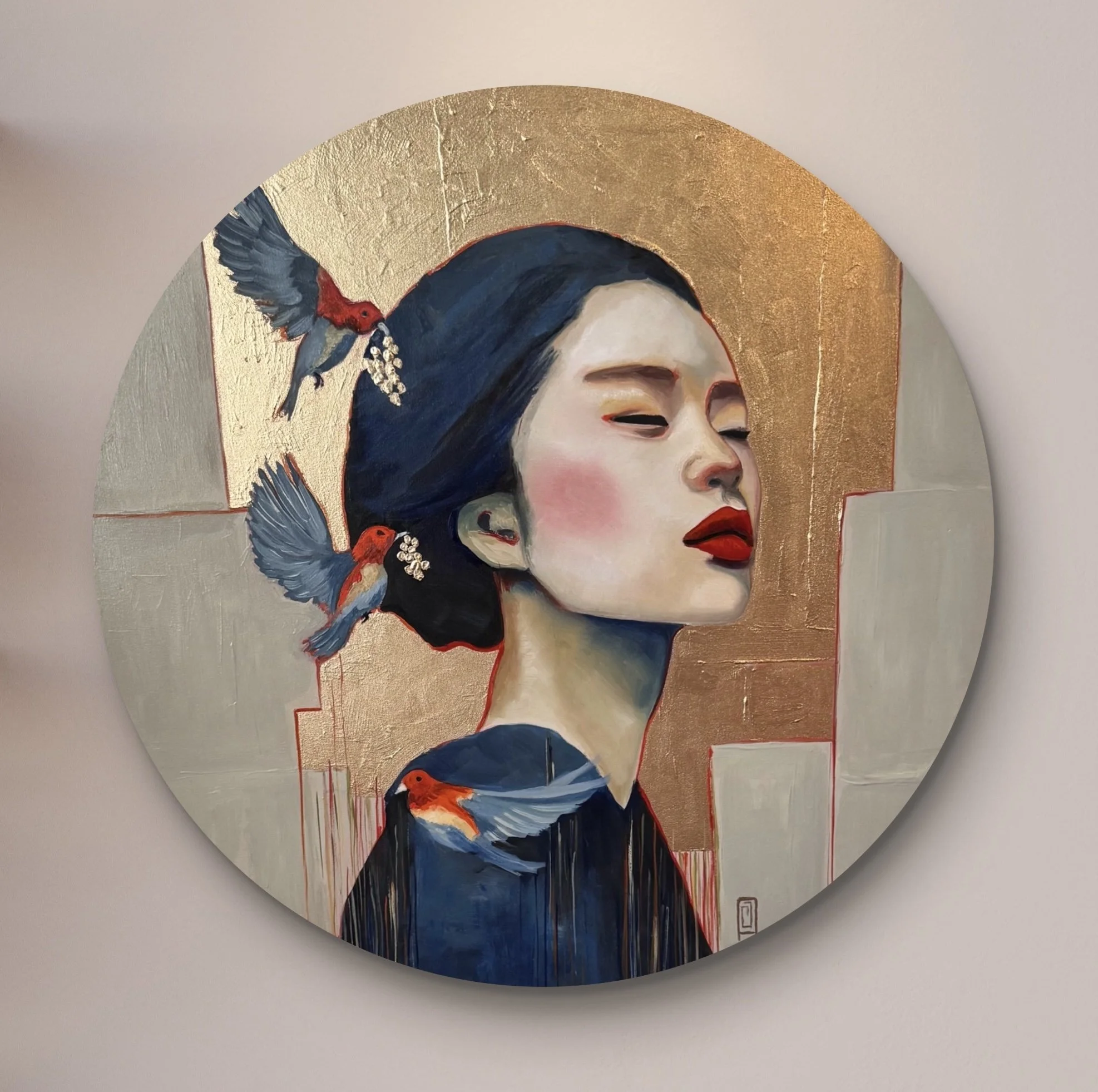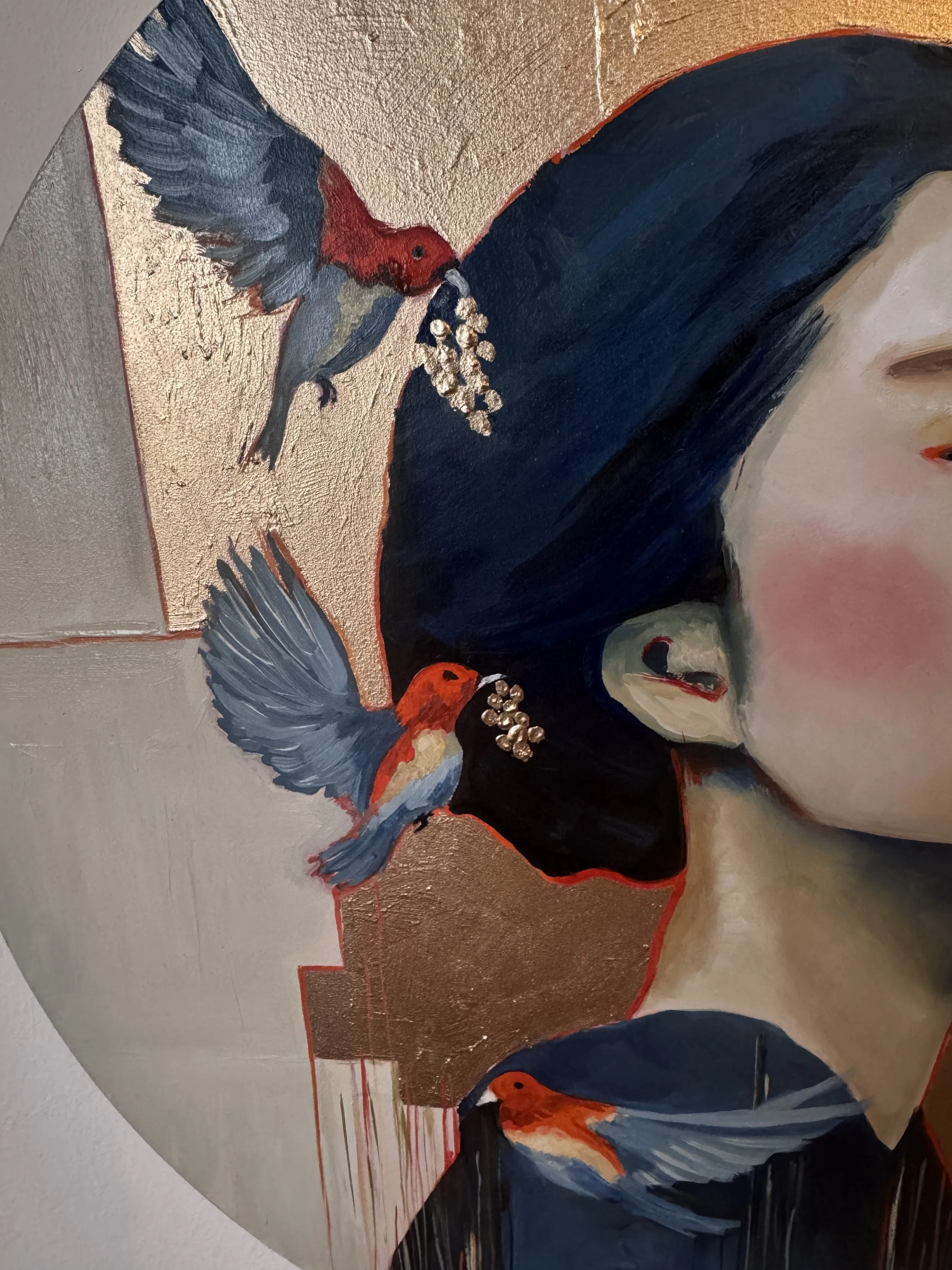 Technique: Oil paint, bronze paint and metal leaf on wood panel