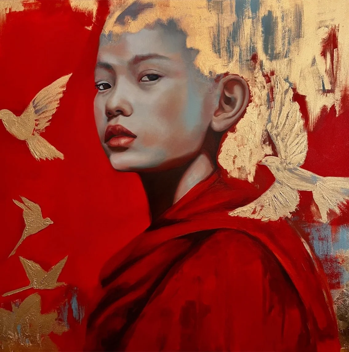 Seeds of enlightenment Technique: Oil paint, metal leaf and bronze paint on canvas Size 70 x 70 cmPrice € 655,00 Euro --- All Artworks