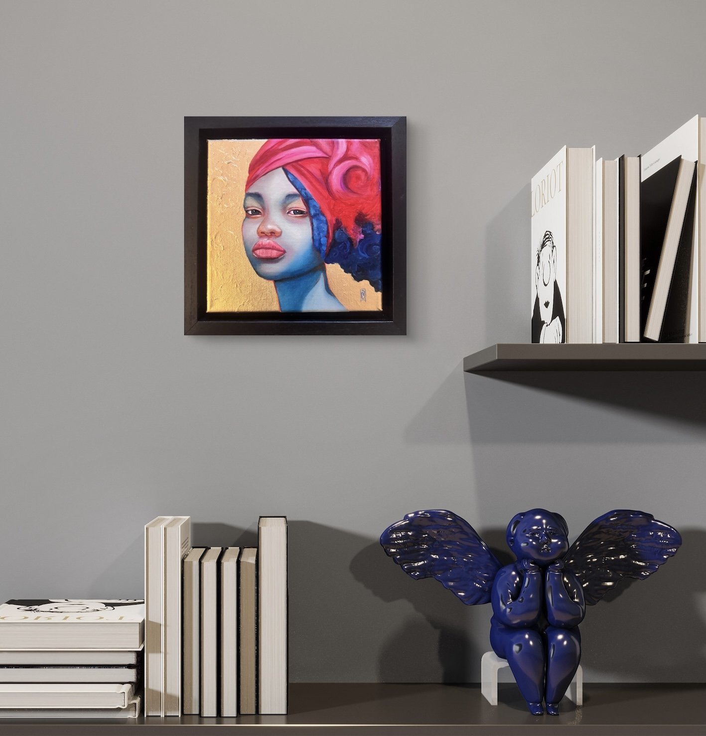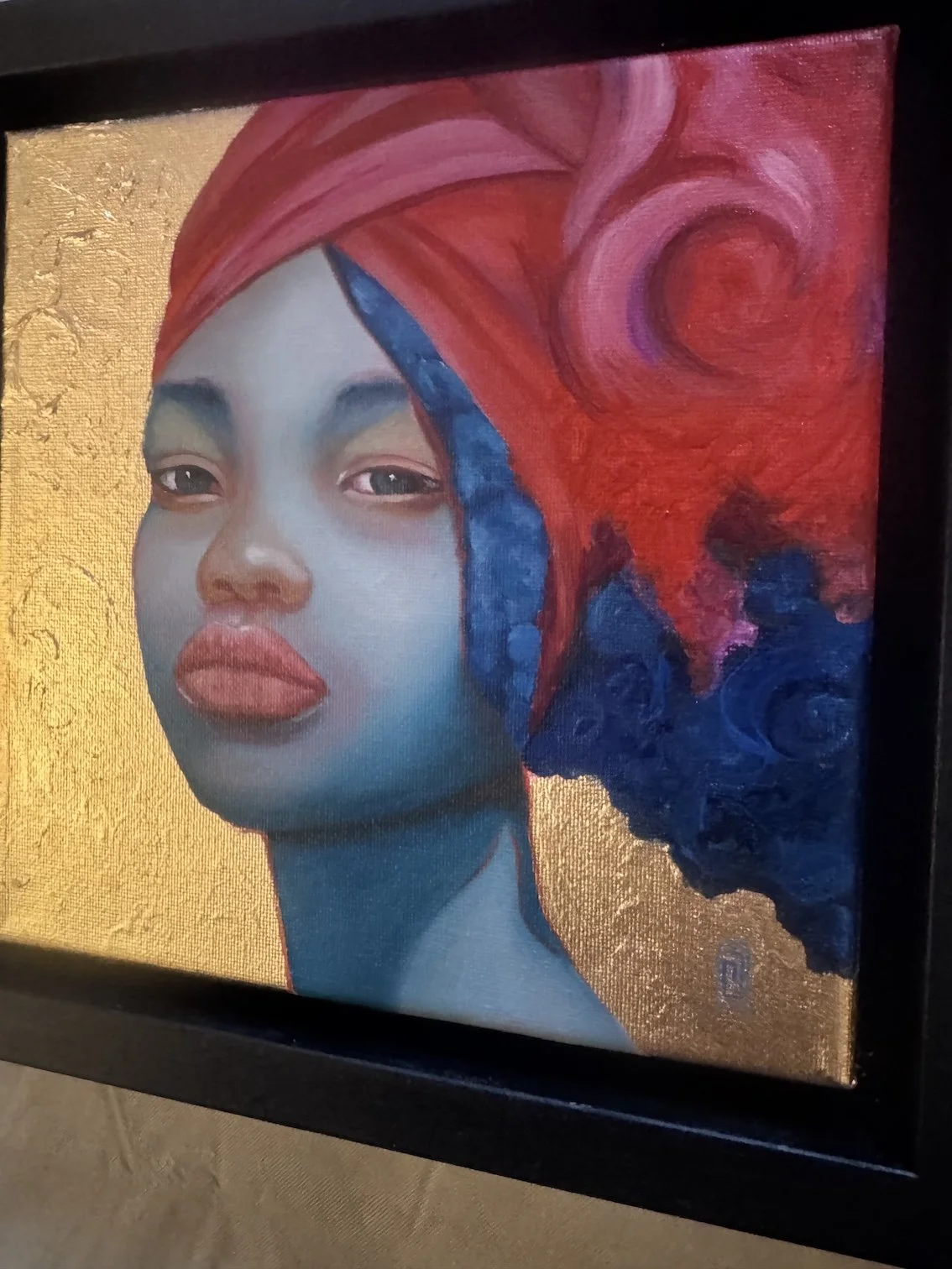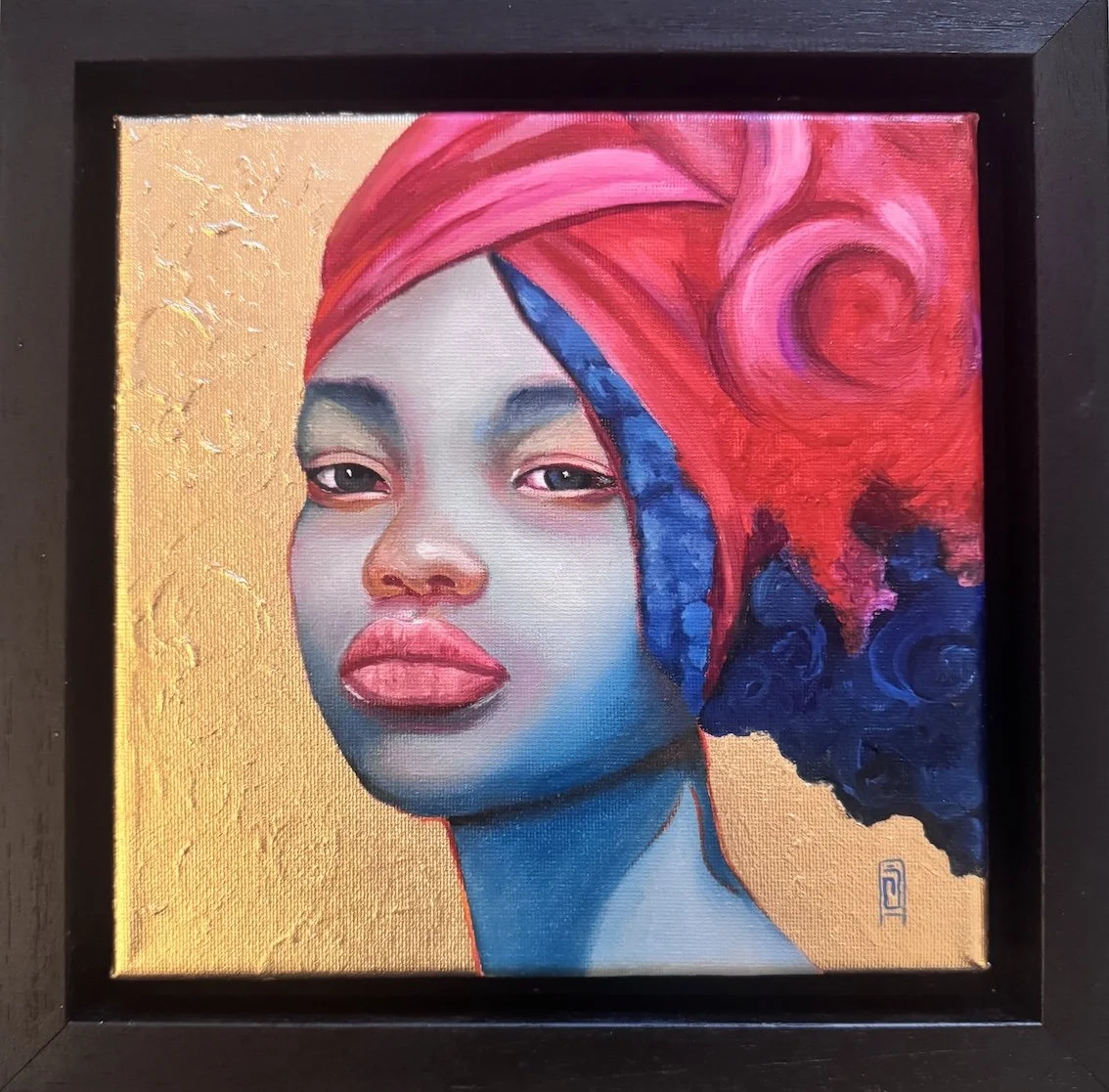 She Technique: Oil paint and bronze paint on canvas Size 20 x 20 cm Price 255,00 euro (frame incl) --- All artworks